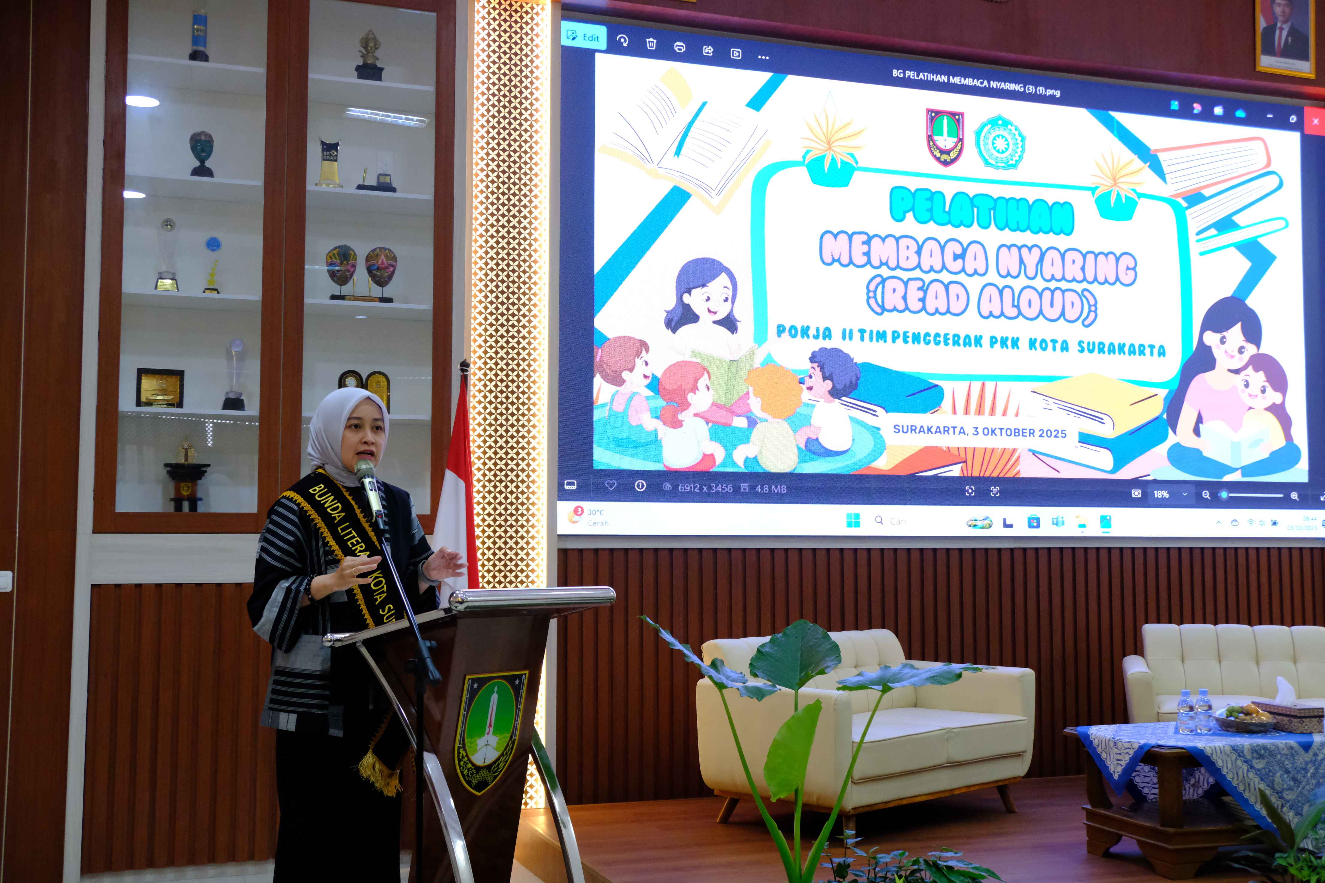 Surakarta – Jumat, 3 Oktober 2025 Ketua Tim Penggerak PKK Kota Surakarta Venessa Winastesia, secara resmi membuka kegiatan Pelatihan Membaca Nyaring (Read Aloud) yang diselenggarakan di Aula Gedung ....